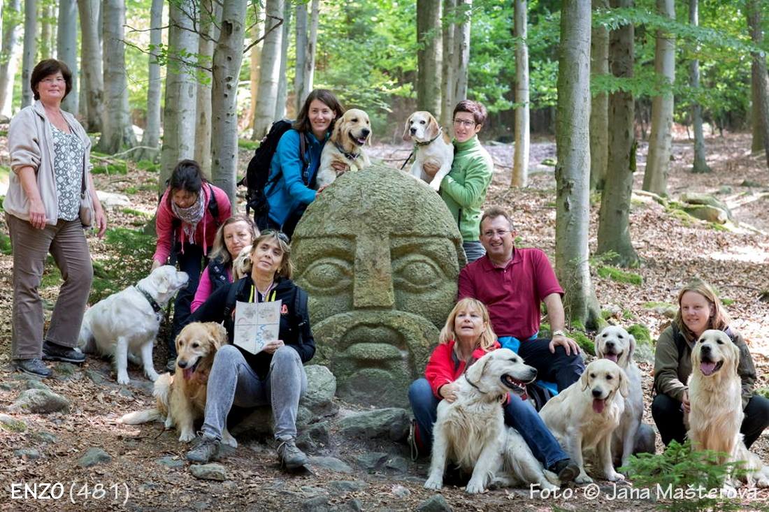 22.6. jsem vyrazila jen s Lexy, protože Cathy už má věk a na tůry se necítí, směr bájný Blaník, kde na mne již čekali naši skvělí Hellerovi s Enzou, tentokrát bez pánečka Jiřího, který si doma léčil bolavá záda. Postupně dojeli ještě tři další sourozenci z vrhu " E " a někteří naši kamarádi lidští i psí. Iva , Šárka a Lenka H. připravily skvělou soutěž a také pěknou prochajdu na Malý i Velký Blaník.Užili jsem si super den plný smíchu a dovádění, který jsme zakončili při pozdním obídku na Farmě,stylové restauraci uprostřed farmy se zvířátky. Nebýt mé opravdu ošklivé migrény, byl to den naprosto dokonalý. Za organicaci a následnou záchranu mé zřízené osoby děkuji holkám Hellerovým. Náš Enzo má ty nejsuprovější majitele, co jsem si pro něj mohla přát. Zažívá s nimi nejedno dobrodružství a spolu s bíglem Lysienem má bohatý psí život. O jeho dnech všedních i svátečních se můžete dočíst v půvabně popisovaných článečcích na FB - Enzo zlatý retriever . V květnu proběhla ve fotosalonu Škoda vernisáž jeho fotografií a křest prvního vydání knihy Enzo - medové dny. Doufám, že již brzy bude k dostání.